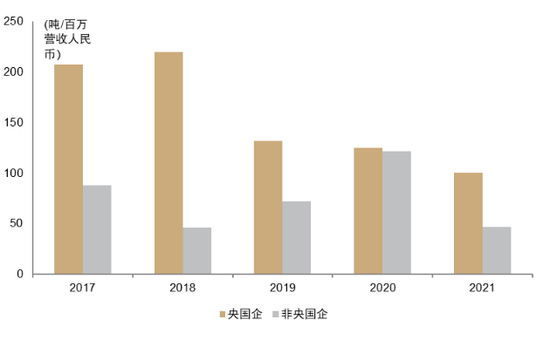 披露数据显示,自2017年以来,央国企的平均碳排放强度均高于非央国企,但整体呈现下降趋势。国企三年改革行动正在进一步促进央国企缩小与非央国企的碳排放强度之间的差距。