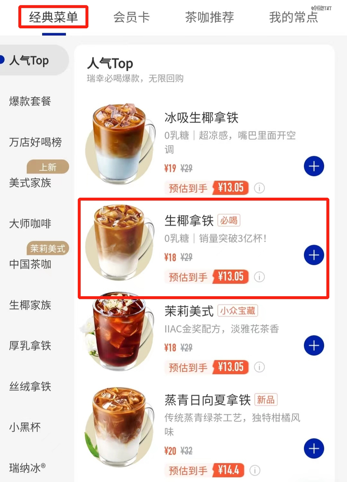 当然也并不是所有的品牌都是如此,也有品牌就通过联名的方式打造出了爆款。瑞幸的联名逻辑更多是以营销推新品,而非限定冲销量,比如之前瑞幸与椰树椰汁联名打造的“生椰拿铁”,不仅引发了社交话题的热议,联名款也成为爆款产品,后续很多咖啡店也都推出的了椰子与咖啡的组合。如今,“生椰拿铁”已经成为瑞幸的经典产品。