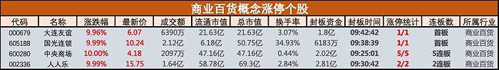 政策面与基本面共振,商业百货持续走高,中央商场晋级5连板