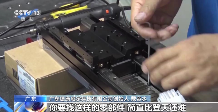 广东德康威尔科技有限公司创始人 戴帝水:我们进入这个行业之后,就发觉在自动化领域关键部件,几乎是给国外垄断的,想卖多少钱就卖多少钱。我们曾经在2017年的时候,导轨的一个滑块,由原来的大概70块钱,涨到160块钱。