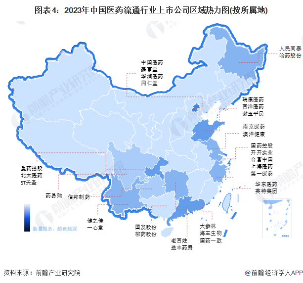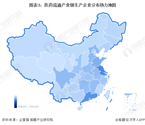 医药流通产业链区域热力地图:上海和江苏分布最集中