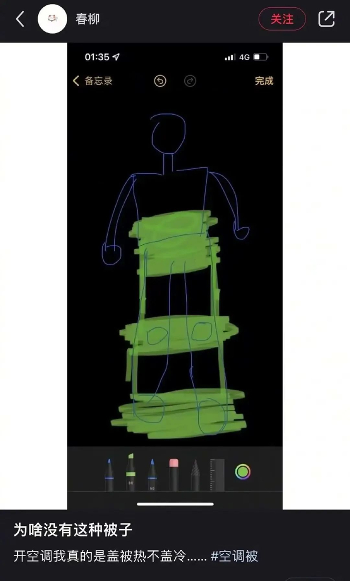 还有博主产生奇思妙想:为什么我们的被子不能设计成下图这样?