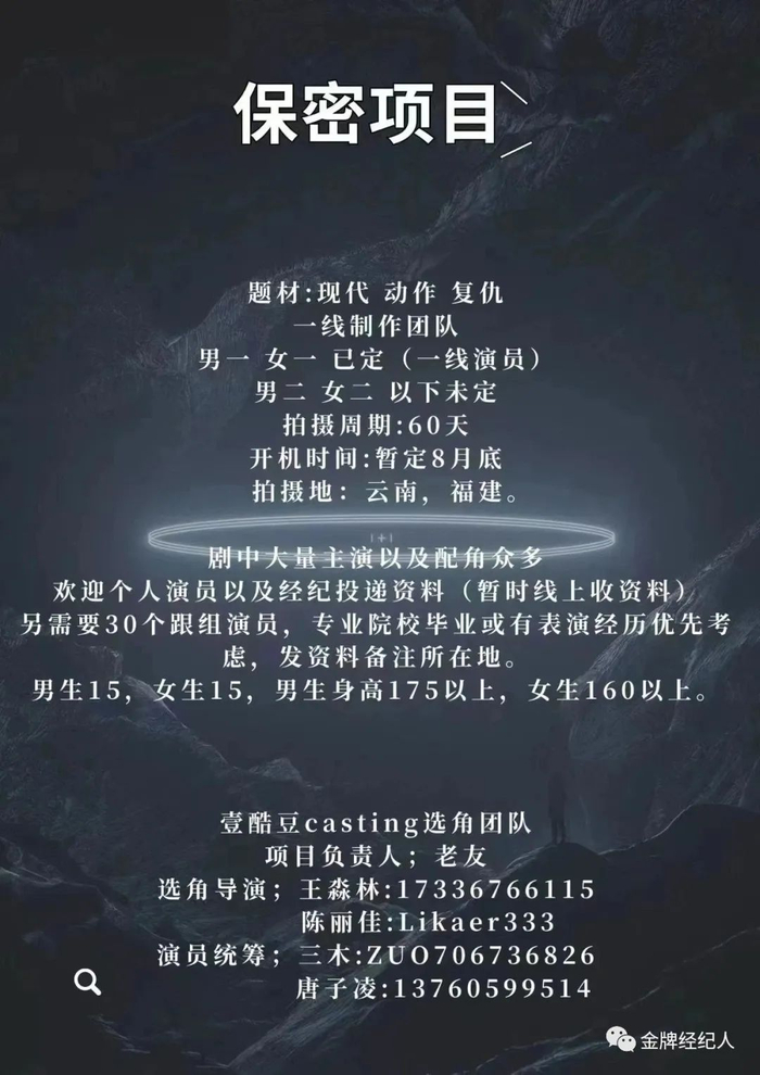 选角导演:王淼林17336766115