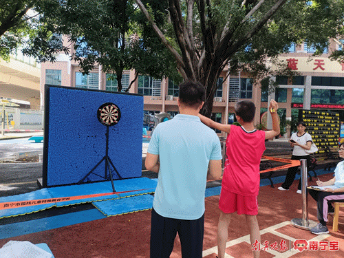 参赛学生在老师的协助下热情地参与到比赛中来,或专注耐心地完成足球射门,或凝神投掷飞镖,都在努力完成自己的运动项目。在老师、教练员和家长的协助下,孩子们沉浸在运动的快乐中,欢笑声、助威声、鼓掌声此起彼伏。