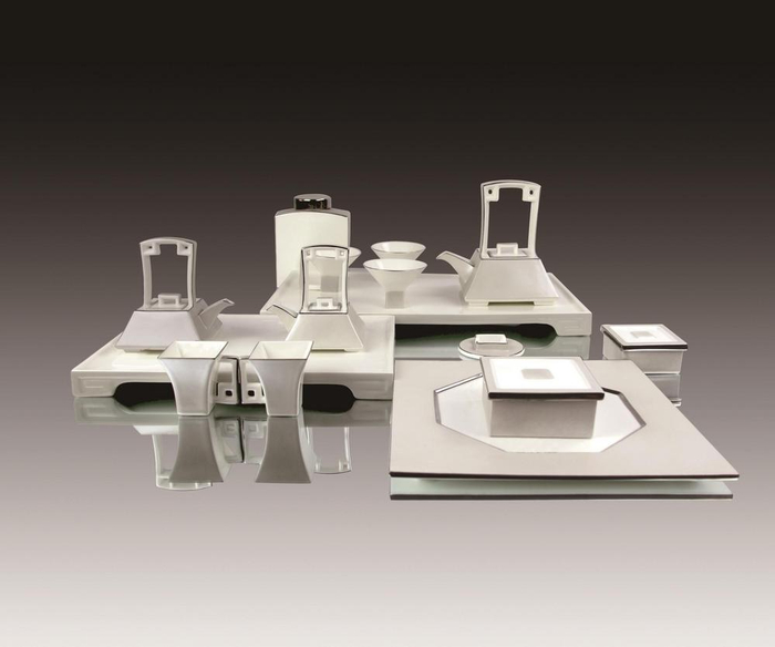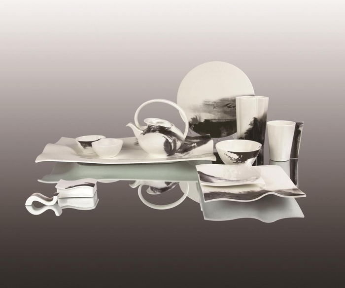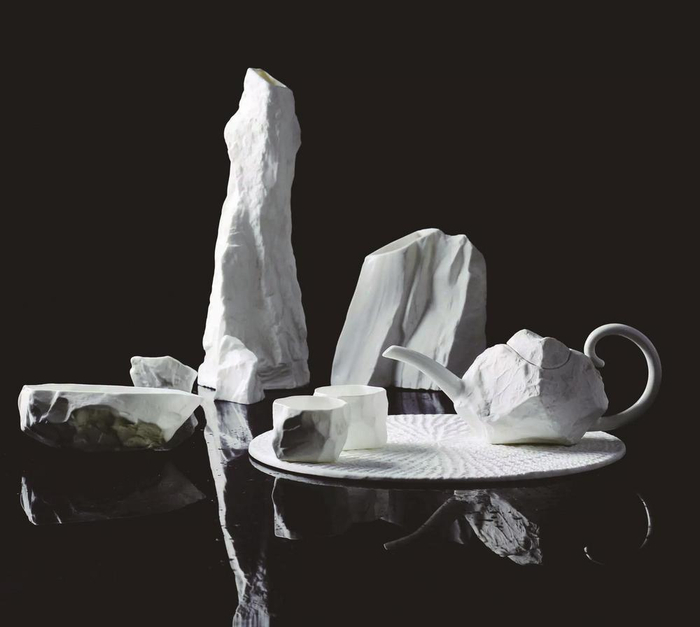 2014年他设计了一款禅石系列茶具,采用纯白的骨质瓷,体现的是一种“却嫌脂粉污颜色”的素洁之美,加上有光釉和亚光釉的对比手法,将自然和当代生活完美结合,突显了白中取变的特殊艺术效果。
