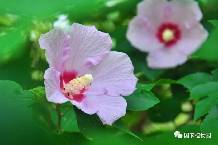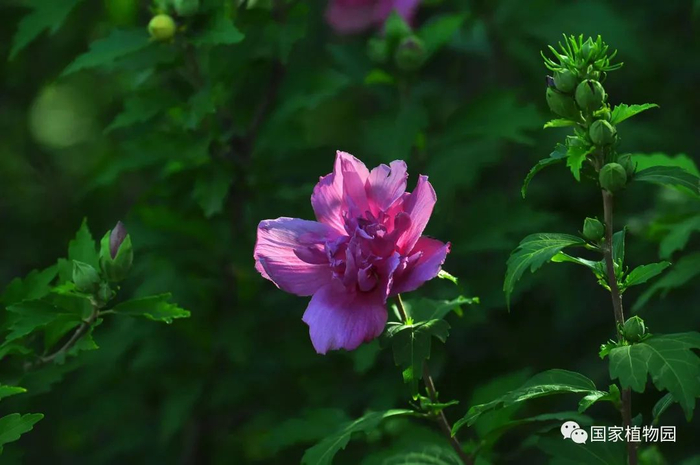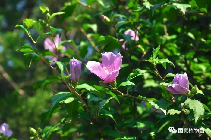 木槿的花朵大而柔弱,在风吹日晒下容易凋零,因此拥有一个令人怜惜的名字“朝开暮落”花。虽然单朵花期短暂,让人不禁感慨韶华易逝,但前赴后继的花朵次第开放,每日都有新生命向着阳光奔赴而来,又充满了日新之美。它的整株花期可从7月持续至10月,从夏到秋长盛不衰,可谓是勤勤恳恳的劳动模范