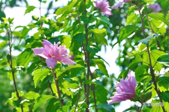 木槿是我国传统的园林花卉,在我国有 3000多年的种植史。《诗经·郑风》中有“有女同车,颜如舜华”的诗句,这首诗用“舜华”来比喻女子的美貌,“舜华”即木槿花,可见在古人心中对木槿花的喜爱程度。此外,“舜”同“瞬”,有瞬间、短暂、“仅荣一瞬”之意。
