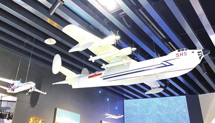 在中国航空工业历史博物馆内,由我国自主研制的第一代大型反潜巡逻机水轰5(SH5)模型被摆放在醒目的位置,“大肚子”外形,“船底子”机身,一组“高翼”外加一双“大鞋子”浮筒,奇特的外形引人注目。它翘头昂首,振翅欲飞,“海上雄鹰”气魄非凡,似乎静静地讲述着当年那场用丁字尺、鸭嘴笔、百人“会战”圆海天梦想的壮阔历史。
