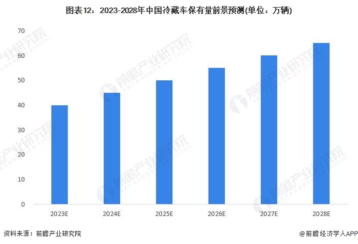 随着我国冷链物流市场整体规模的逐年增长,公路冷链物流市场规模也随之增长并且因为公路运输的便捷性,未来公路冷链运输仍将是冷链运输的主流方式。根据中物联冷链委的冷藏车历年销量数据,假定现有的销量规模不变,按照15年强制报废年限测算,到2028年,冷藏车保有量有望超过60万辆。