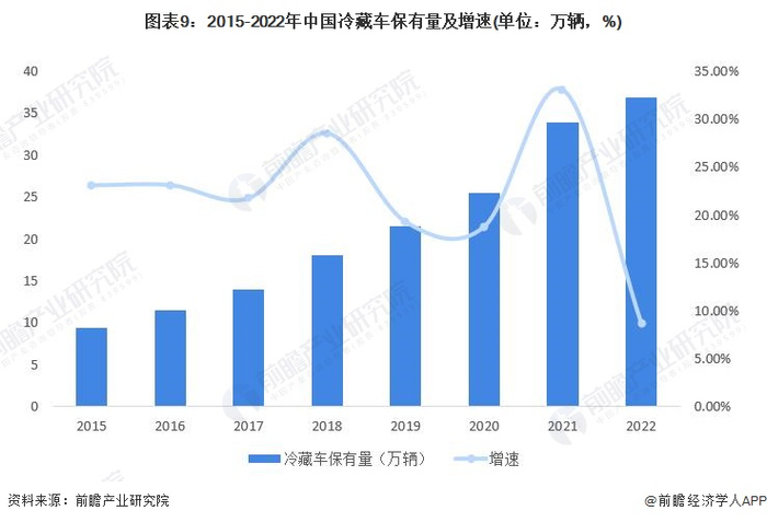 据中物联冷链委统计,2015-2021年,我国冷藏车保有量几乎保持了20%以上的增速。2021年,我国冷藏车保有量约34万辆。中物联冷链委统计,2022年冷藏车保有量超过36.9万辆,同比增长8.02%。