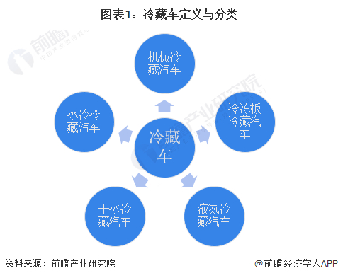 冷藏汽车广义上泛指运输易腐货物的专用汽车,是公路冷藏运输的主要工具。可以将中国专用汽车细分为保温汽车、冷藏汽车和保鲜汽车。保温汽车是只有隔热车体而无制冷机组;冷藏汽车是有隔热车体和制冷机组且厢内温度可调范围的下限低于0℃,用来运输冻结货物;保鲜汽车是有隔热车体和制冷机组(兼有加热功能),厢内温度可调范围均高于0℃,用来运输新鲜货物。