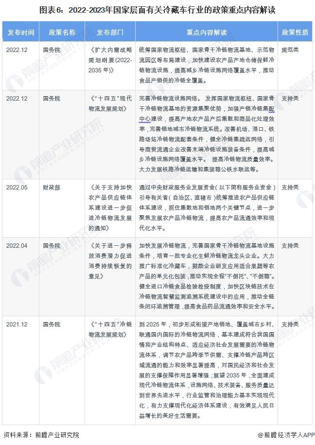冷藏车作为冷链物流体系中的关键一环,其发展受到政策的重视,相关政策主要以支持类为主。截至2023年6月我国冷藏车行业重点政策如下: