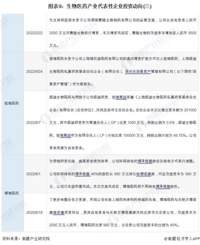 生物医药产业链代表性企业最新投资动向