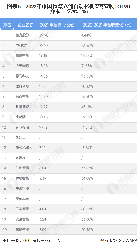 本文核心数据:智能仓储行业上市公司营业收入;智能仓储行业市场份额