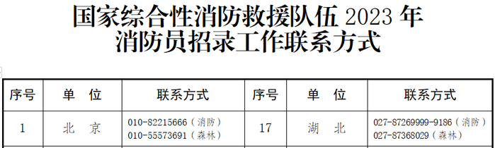 6.国家综合性消防救援队伍2023年消防员招录工作联系方式