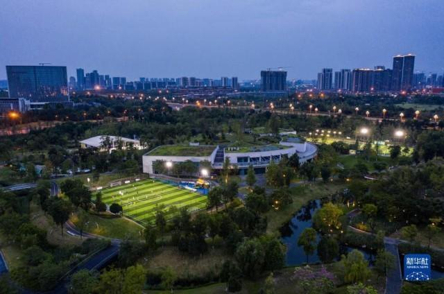 这是在成都市龙泉驿区拍摄的东安湖体育公园(7月12日摄,无人机照片)。