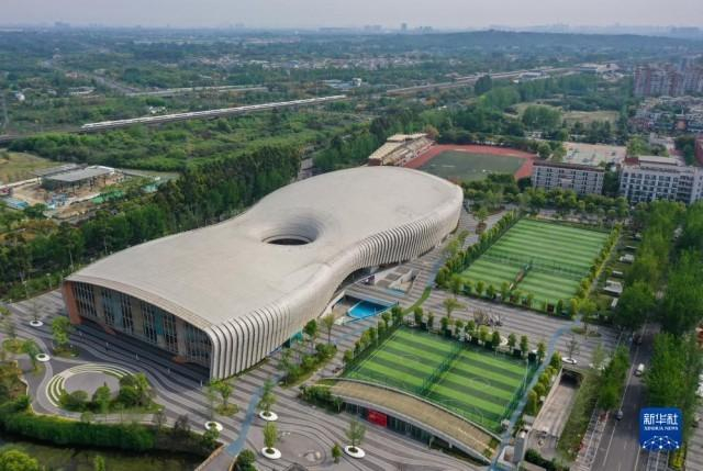这是成都市新都区的香城体育中心(4月17日摄,无人机照片),这里将成为成都大运会水球项目的比赛场地。