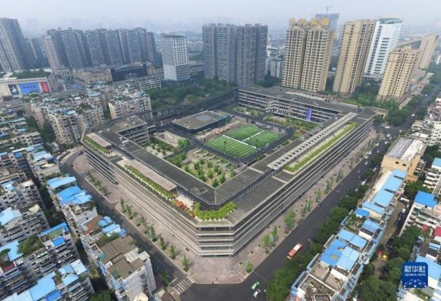 这是成都市金沙天空森林体育公园(7月20日摄)。金沙天空森林体育公园位于成都市金沙公交枢纽站停车场楼顶,占地12000平方米,有篮球馆、排球馆、综合训练馆、体适能训练区、足球场和健身步道等。