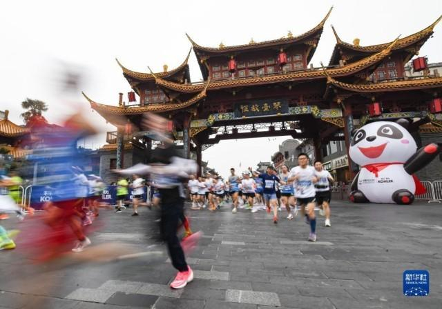 马拉松爱好者在比赛中经过成都琴台路(2022年11月20日摄)。