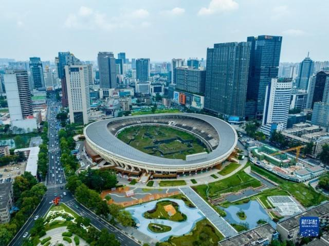 这是四川省体育馆(7月19日摄),该馆将承接成都大运会篮球比赛。