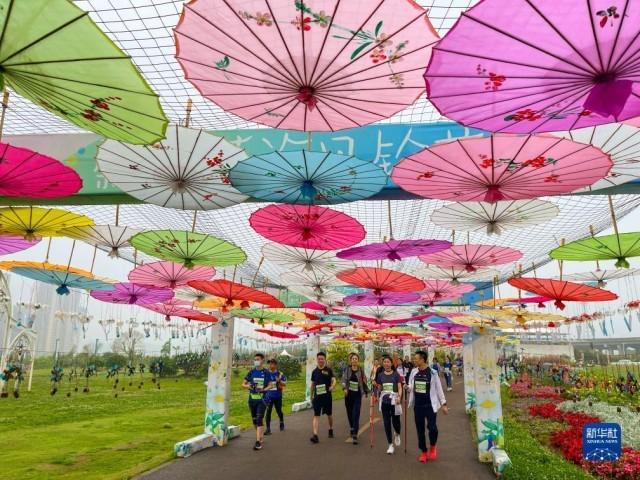 人们在成都绿道上参加徒步活动(2021年5月22日摄)。