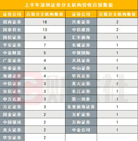 随着上半年深圳证券分支机构营收数据的出炉,分支机构百强也浮出水面。