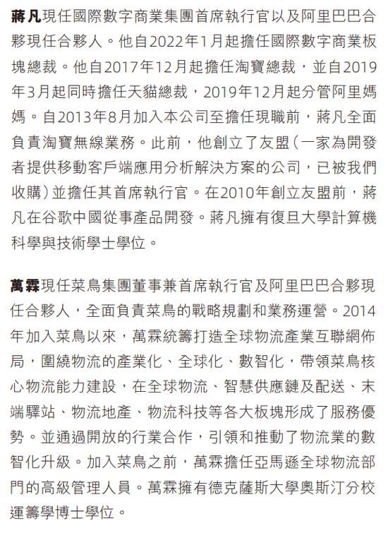 据年报披露,菜鸟集团CEO万霖、国际数字商业集团CEO蒋凡已成为阿里合伙人。