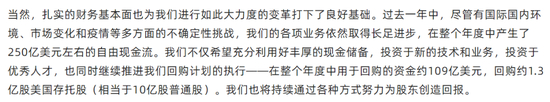 张勇还表示,在2023财年,阿里巴巴集团产生了250亿美元左右的自由现金流。“我们不仅希望充分利用好丰厚的现金储备,投资于新的技术和业务,投资于优秀人才,也同时继续推进我们回购计划的执行——在整个年度中用于回购的资金约109亿美元,回购约1.3亿股美国存托股(相当于10亿股普通股)。我们也将持续通过各种方式努力为股东创造回报。”