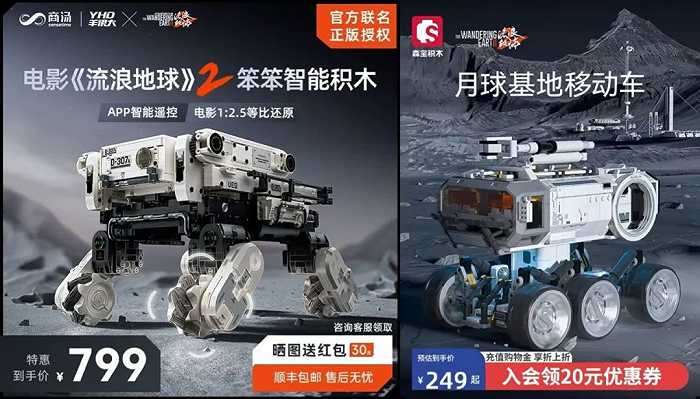其中,赛凡科幻空间是翌星文化旗下品牌,授权合作方还有《三体》、《流浪地球》、中国火星探测工程、中国探月工程等;徐工集团则是中国工程机械行业排头兵,与《流浪地球2》合作推出联名模型;52TOYS是国内头部潮玩品牌,推出了《流浪地球2》变形玩具;商汤科技是一家人工智能软件企业,旗下文创品牌“羊很大”参与了此次衍生品开发;森宝积木则与《流浪地球2》携手打造了主题积木产品。