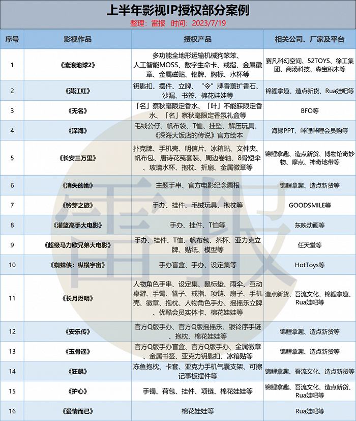 2023年已然过半,目前有多少影视IP授权衍生品表现出色?具体有哪些商品品类,涉及哪些公司和平台?影视IP衍生品业务还存在什么问题?
