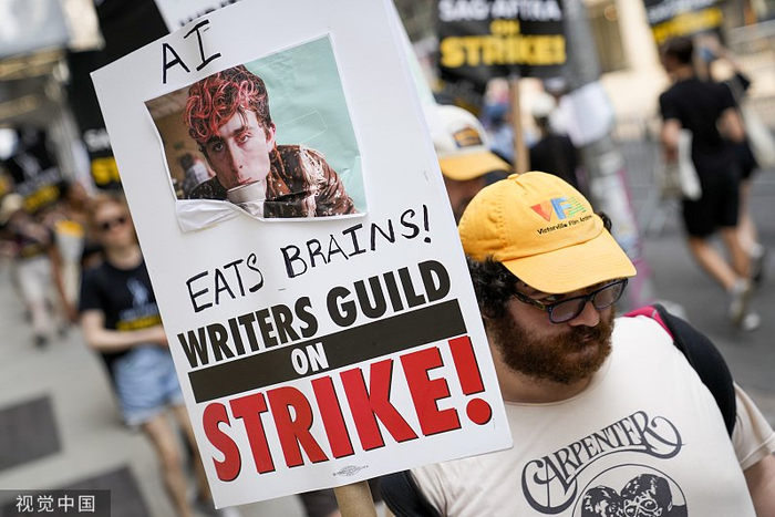 除此之外,AI技术的应用范围也成为罢工行动的一个重要议题——编剧工会主张“编剧只能是人类”,AI只能作为辅助工具;演员工会反对由AI生成的角色代替各类演员出演,他们质疑“制片方是否有权让AI学习演员的作品”。