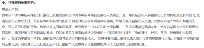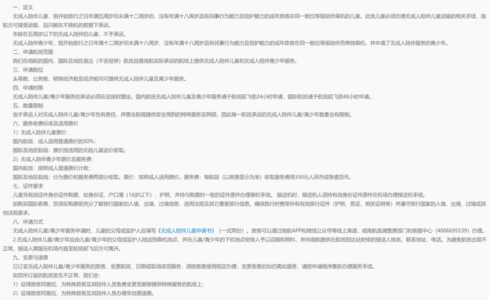 南航无成人陪伴儿童/青少年服务须知:
