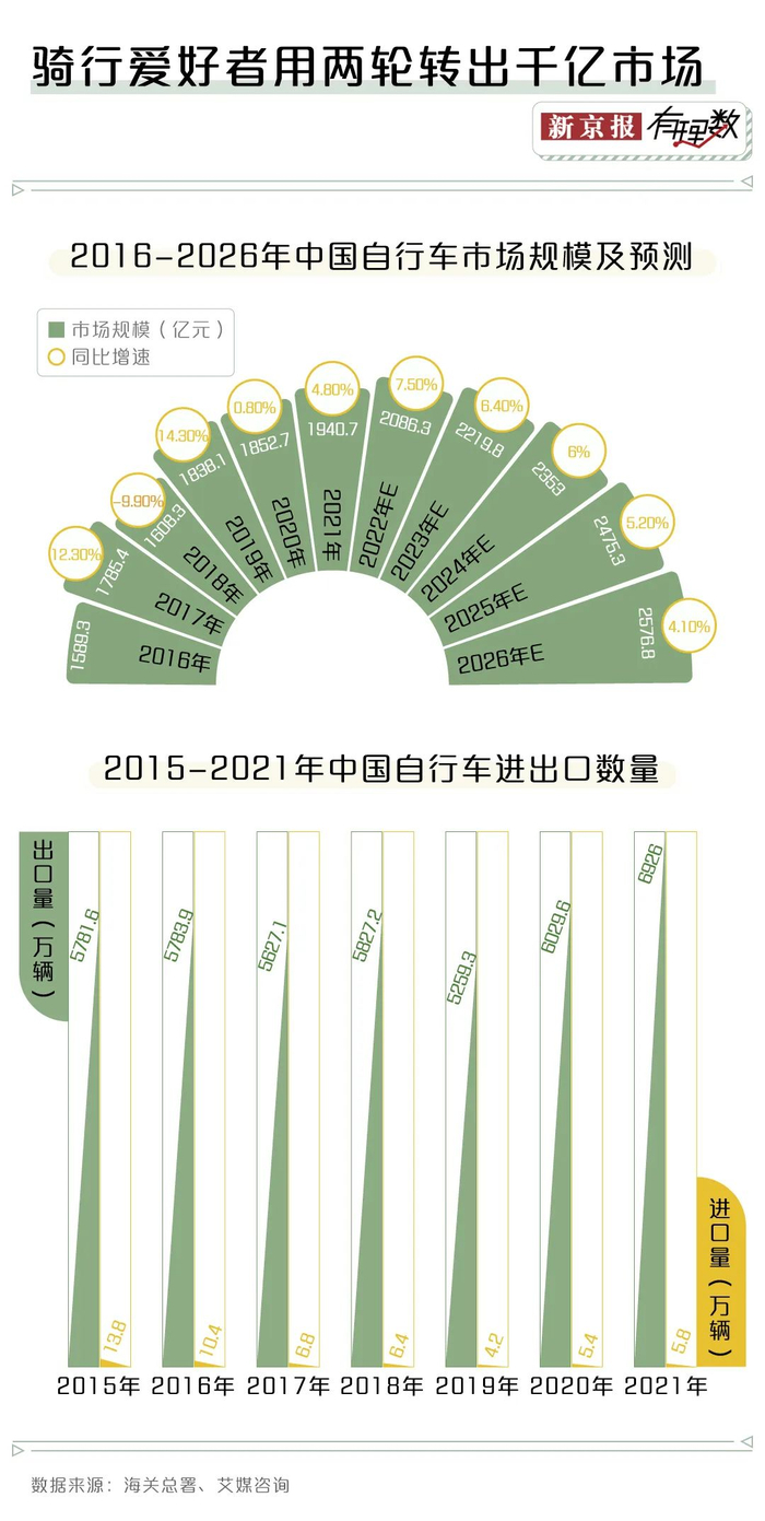 曾几何时,自行车、缝纫机和手表还被视为结婚三大件。随着经济发展,私家车保有量上升,汽车逐渐取代自行车成为大众主流出行方式,但近些年,“绿色出行”“低碳生活”等理念深入人心,加上共享单车发展及疫情影响,大众骑行热潮复苏。