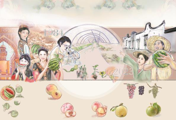 8424有过不少名字,比如“新优三号”“早佳”。而让人记忆最深的,还是这串数字。它甚至是坐着“时空快车”诞生的。吴明珠女士的传记中记录了这一艰辛过程。她持续多年对新疆地方瓜种资源的收集整理,为8424的选育打下了基础。8424的父本选育用时20年、母本选育用时6年,耗费了无数心血。尤其是1973年起,吴明珠就带着团队开启了“南繁北育”之路,也就是春天在新疆选育瓜种,冬天到海南岛继续种瓜。利用海南冬季的光热条件,一年干两年的活,踏上育种的“时空快车”……8424,就是这样选育而出的。