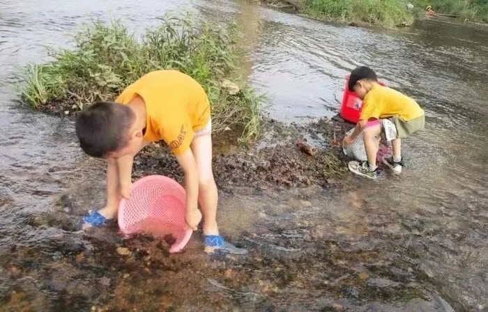 河虾喜欢依附水草生活,拿上竹箕,专找水草多处舀虾,每一次转上十来分钟,就有了一大碗的收获。