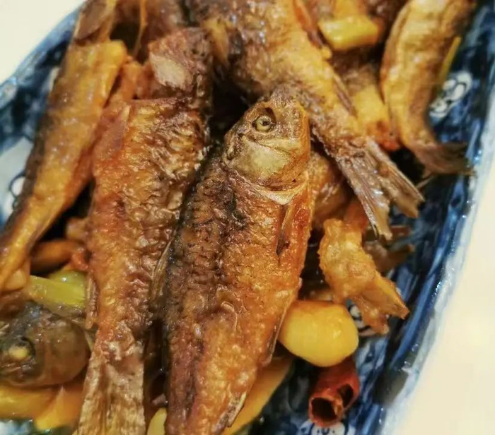 禾花鱼是一种小巧的鲤鱼品种,它的鱼苗在稻田中养殖,采食落水的禾花后长大,因鱼肉具有禾花香味而得名。煎焖禾花鱼配料简单,做法方便。添加基本的葱、姜、辣椒、盐,先用热油香煎,后再加山泉水焖煮就可以了。