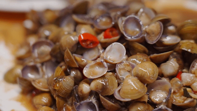 蒜末、姜末爆香,喜欢吃辣再放点小米椒,大火爆炒到蚬壳开口,几分钟,一盘鲜味河蚬就可以端上桌了。像嗑瓜子那样一吸,蚬肉应声落入口中,吃起来韧韧的,还有点糯糯的感觉。