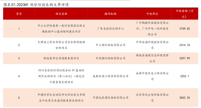 信创是中国建设数字经济的基础,相关总体目标已经明确,分析师预计下半年有望迎来招标。东吴证券王紫敬等人在7月3日发布的研报中表示,其中,行业信创是2023年信创推进的重点方向,相关央国企资金充裕,建议优先关注下游客户为行业信创的计算机标的。行业与党政信创相关标的:中国软件,海量数据,神州数码,太极股份,中国长城,中科曙光。工业信创方面:东土科技,中控技术,宝信软件,赛意信息,汉得信息,中望软件。其他关注:金山办公、纳思达、用友网络等。