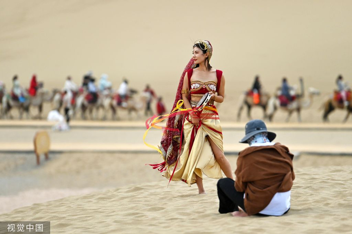 甘肃酒泉:敦煌“飞天旅拍”持续走红 新增西域公主等妆造