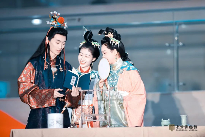 7月14日长沙博物馆特别推出夜场主题活动——“博物馆奇妙夜之红楼幻境”游园活动及展览参观。生动的主题情景演绎、雅致的花艺秀和茶道表演、精妙的扇面绘制展示,有趣的红楼梦主题发型妆造体验,美味的小食点心……这一场沉浸式大观园氛围体验,引观众入画,梦红楼一场。