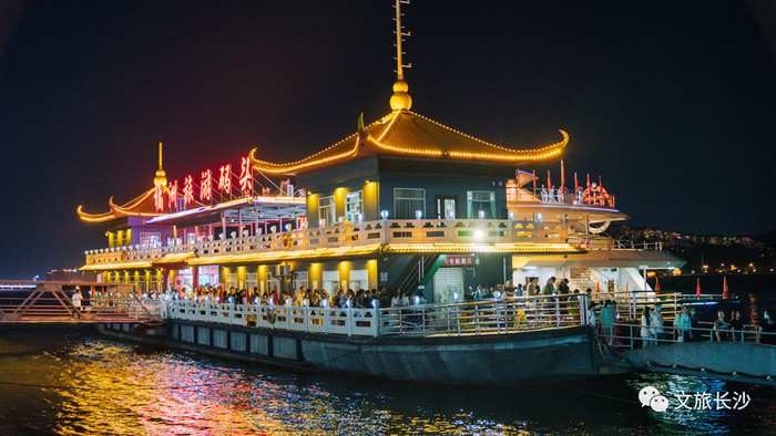 从橘子洲的游轮码头出发,过一把乘船夜游湘江的瘾。