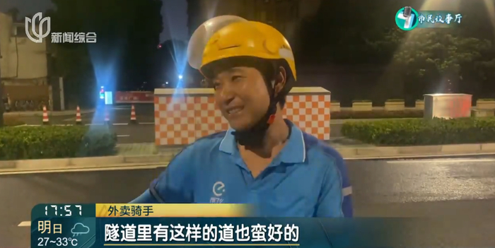 有外卖骑手表示:“说实话这是我第一次穿隧道,就被你们逮住了。刚好今天晚上有点晚了,我想应该没什么交警了,抱着侥幸心理就过来了。”