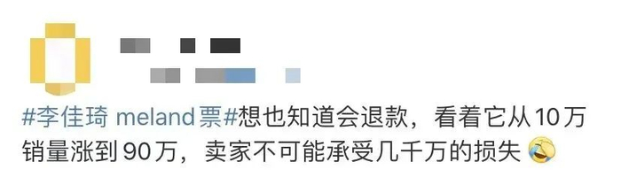 此举引发网友对MELAND CLUB强制退款操作的不满,“李佳琦meland门票”也一度冲上热搜。