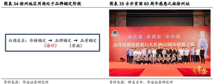 苏北市场长期以来被认为具有“地产强势、易守难攻”的特点,我们认为,徐州白酒格局一方面反映了这样的属性,另一方面也提出了进军这类地产高地的解决思路。从古井贡酒徐州地区的发展经验来看,短期内想要实现突破,一是做好产品聚焦,专注一两个重点单品推广,类苏州模式的全价格带产品容易分散精力不易推开;二是做好业务人员体系搭建与培训,通过差异化的圈层服务取得渠道及意见领袖认可,保证业务人员的精力充足、服务到位。渠道反馈古井贡酒2022年实现高速增长,今年预计将继续保持高增。