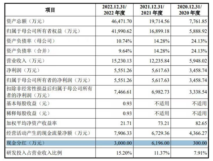 虽然它的营收不高,但股东们对分红毫不手软。这三年,申科生物被分走了 300.00 万元、 6,196.00 万元和 3,000.00 万元的现金股利。尤其是2021年,分红还出现了寅吃卯粮的现象。