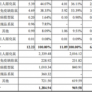 百奥赛图的小白鼠销售价格和数量也迅速上涨,2020年-2022年,各类小鼠的平均销售价格分别为975.88元/只、969.58元/只和1384.94元/只,销量合计达6.76万只、11.09万只和12.23万只。这部分的销售收入分别为0.66亿元、1.08亿元和 1.69亿元。