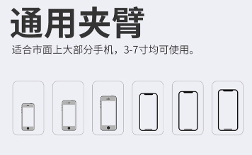 通用夹臂,适用与市面上大部分手机,3-7寸均可使用。