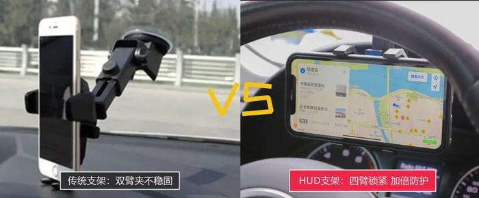 安装之后支架与仪表台高度协调,就像是原车标配HUD抬头显示一样。