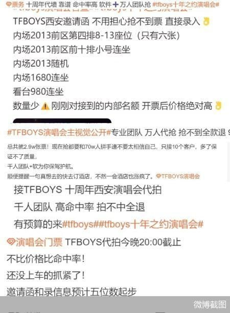 在TFBOYS相关微博话题下,粉丝相约到场应援的讨论,被大量自称资深票务的黄牛淹没。