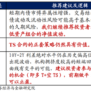 近期市场交易未来降准的预期,短端收益率明显下行,后续若市场出现波动,机构拥挤度较高的短端出现回调的概率不低,10Y-2Y期限利差有继续收窄的可能,建议投资者参与做平10Y-2Y利差的机会(即多T+空TS)。
